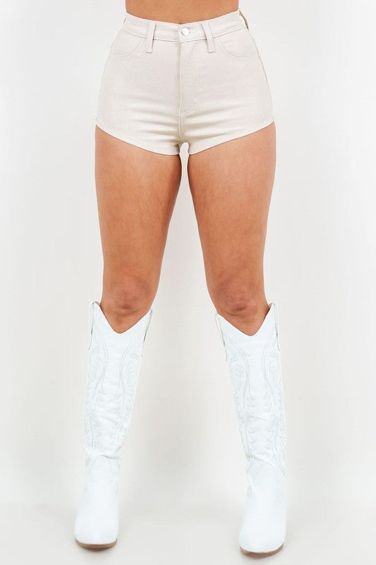 Introducing the Python Snake Short featuring front button and zipper closure, back pockets, faux front pockets, Python Print, Made in USA