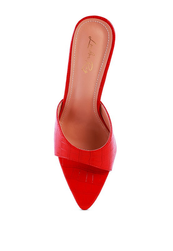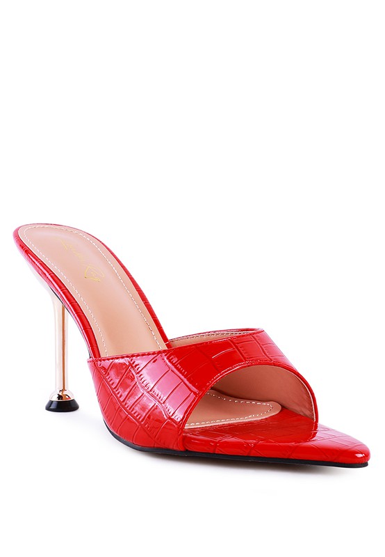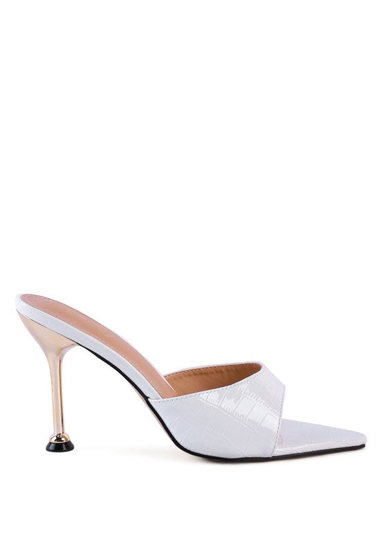Croc Texture Faux Leather stylish sandal - Be Gram Ready with this pointed high heel sandal. The metallic heeled pointed shoe is all gorgeous!