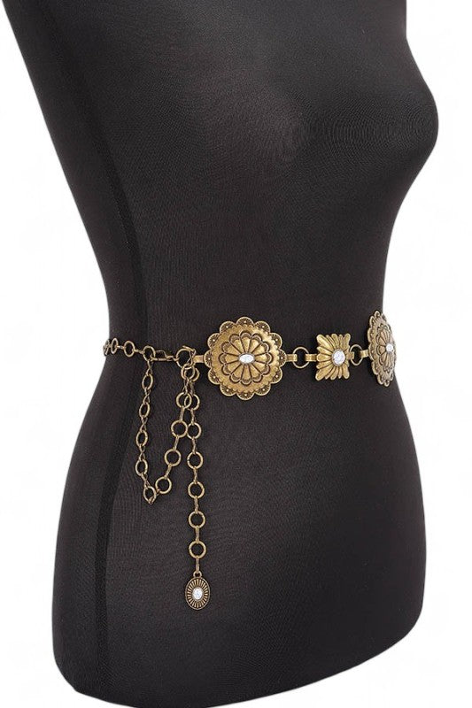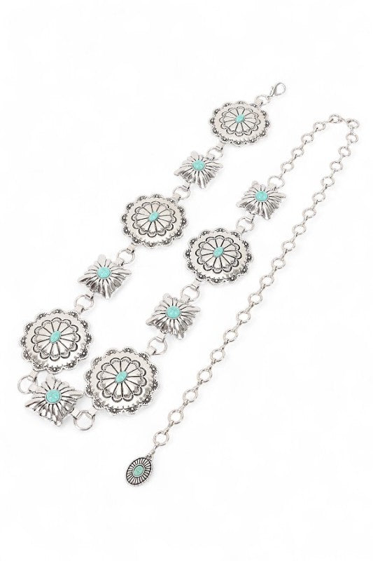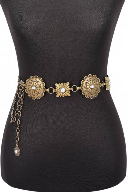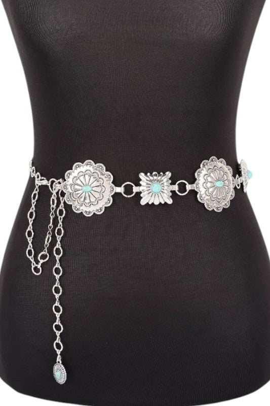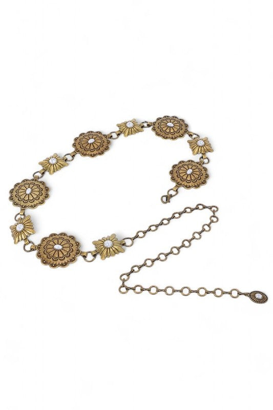 Western Oval Concho Station Fashion Chain Belt